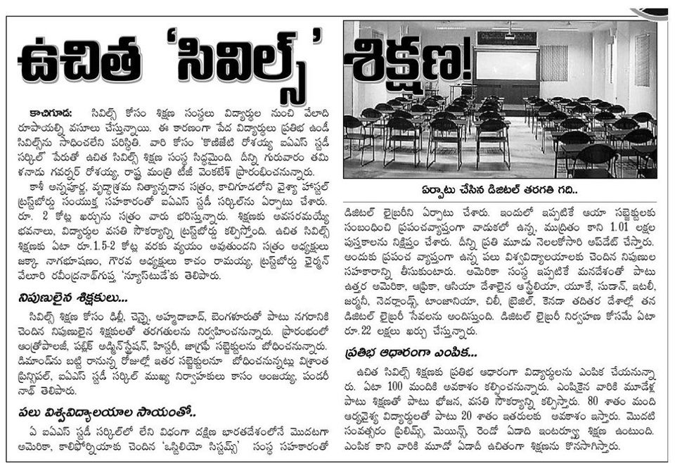 ఆర్య వైశ్య విద్యార్థులకు ఉచిత సివిల్స్ శిక్షణ