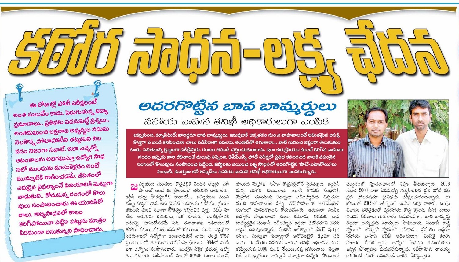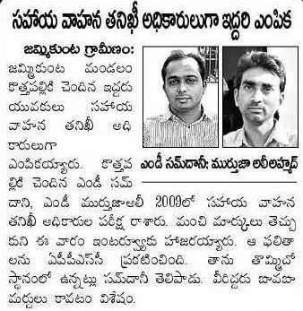 జమ్మికుంట నుండి ఇద్దరు సహాయ వాహన తనిఖీ అధికారులుగా ఎంపిక