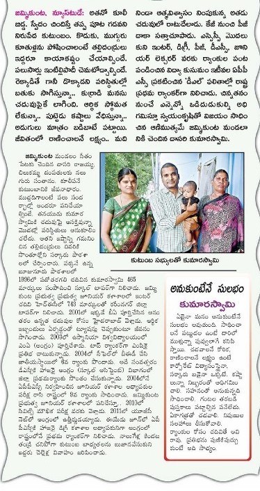 డి.ఎల్. లో రాష్ట్ర ప్రథమ ర్యాంక్ సాధించిన కూలి బిడ్డ