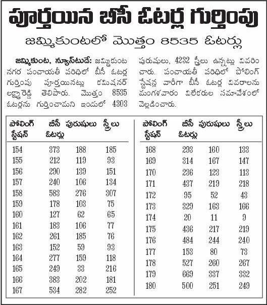 పూర్తయిన బీసీ ఓటర్ల గుర్తింపు – జమ్మికుంట లో మొత్తం 8535 బీసీ ఓటర్లు