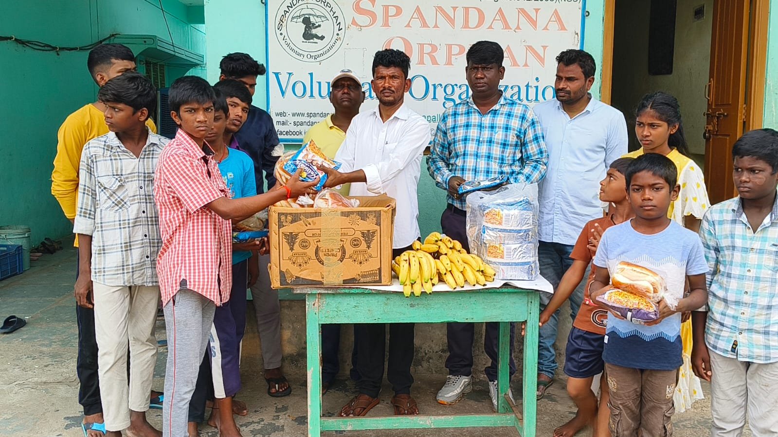 సోమవారం రాచపల్లి రమేష్ కుమార్ ఆధ్వర్యంలో స్థానిక స్పందన అనాధాశ్రమం లోని పిల్లలకు బ్రెడ్, అరటిపండ్లు, కారా వంటి ఆహారపదార్థాలను పంపిణీ చేశారు.