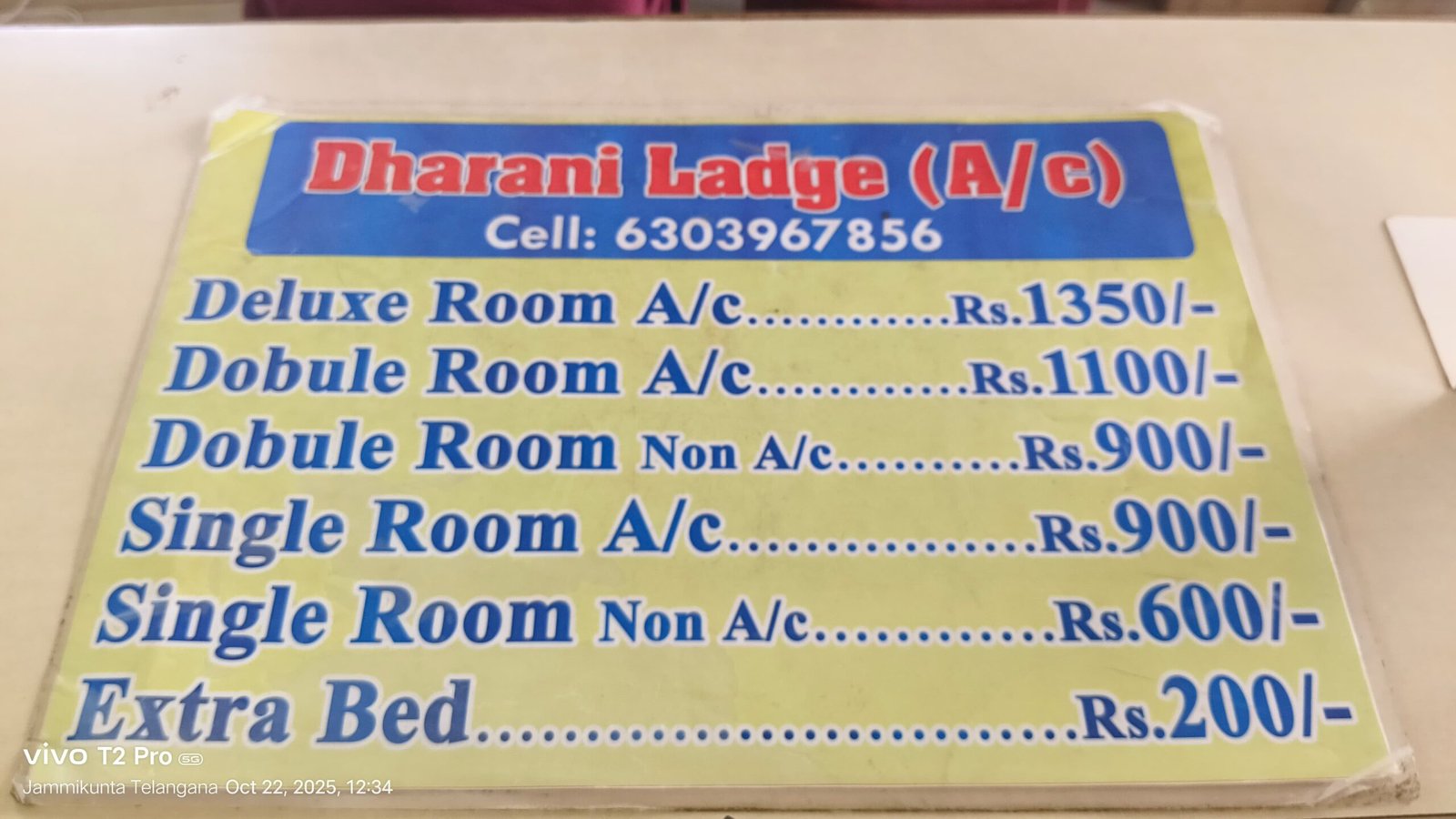 Dharani Lodge, Besides Annapurna Theatre, Main Road, Jammikunta