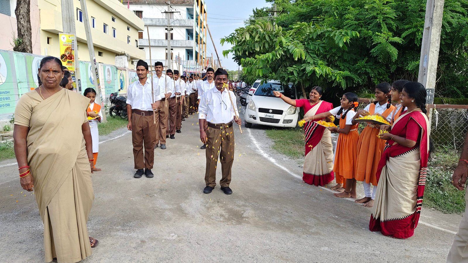 శ్రీ సరస్వతి శిశు మందిర్ నుంచి పురవీధుల గుండా స్వయంసేవకులు క్రమశిక్షణతో కూడిన కవాతు నిర్వహించారు. ఈ కార్యక్రమంలో ఖండ కార్యవాహ దాసరి రవీందర్, ముఖ్య అతిథి డాక్టర్ ముక్క రాజేశ్వరయ్య, ప్రధాన వక్త దేవుని మురళి సహా దాదాపు 200 మంది స్వయంసేవకులు పాల్గొన్నారు.