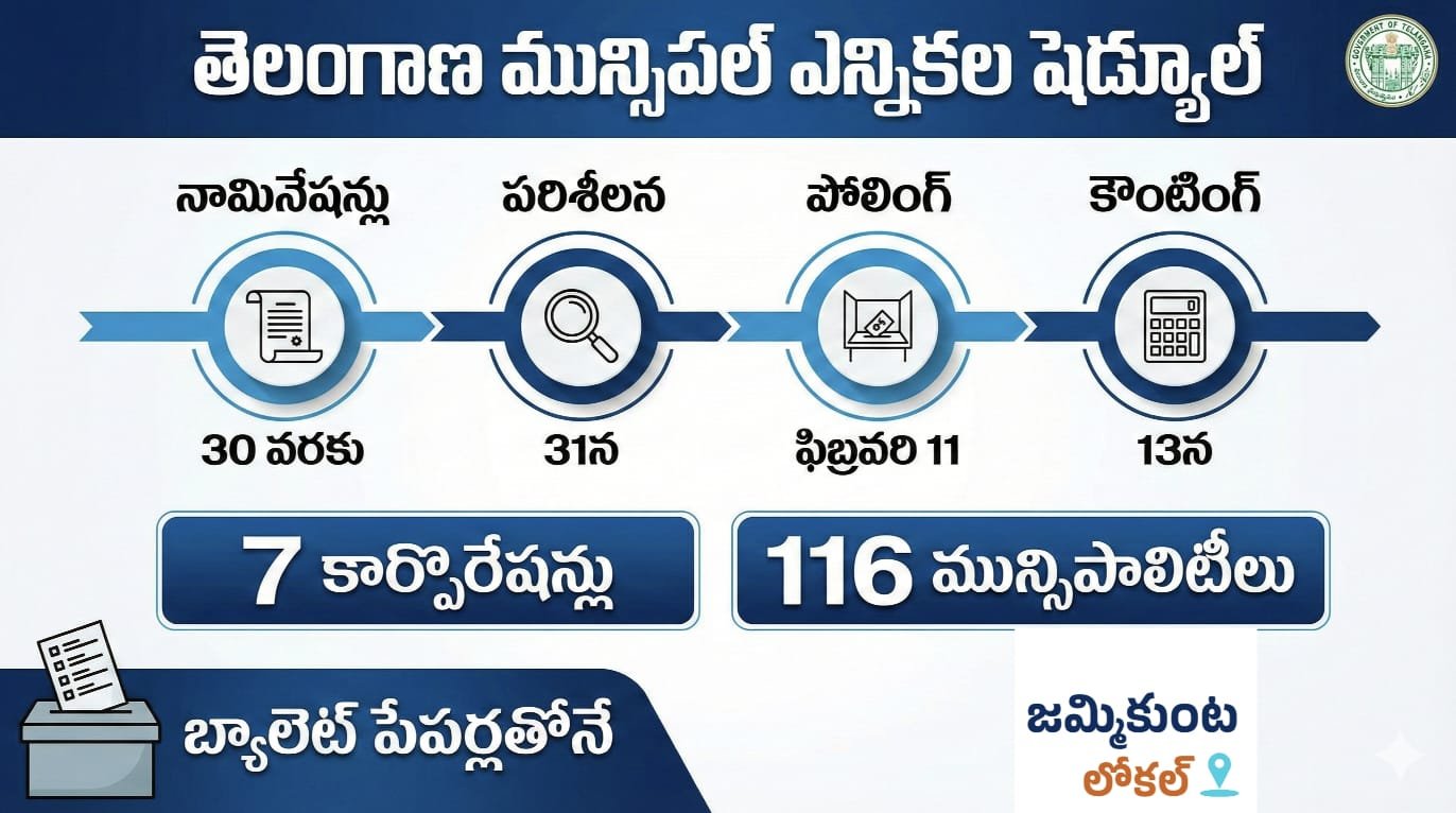 హైదరాబాద్ – రాష్ట్రంలో మున్సిపల్ ఎన్నికల షెడ్యూల్ అధికారికంగా విడుదలైంది. మొత్తం 7 కార్పొరేషన్లు, 116 మున్సిపాలిటీలలో ఎన్నికలు జరగనున్నాయి.